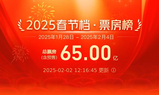 بیجنگ (نمائندہ خصوصی)نیٹ ورک پلیٹ فارم کے اعداد و شمار کے مطابق چین میں 2025 جشن بہار (28 جنوری سے 4 فروری) کے دوران فلموں کی مجموعی باکس آفس آمدنی (پری سیل سمیت) 6.5 بلین یوآن سے تجاوز کر گئی ہے.