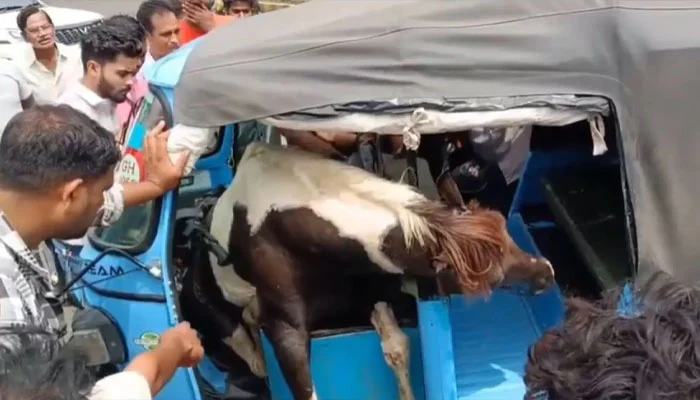 گھوڑا چھلانگ لگا کر رکشے میں پھنس گیا، ویڈیو وائرل